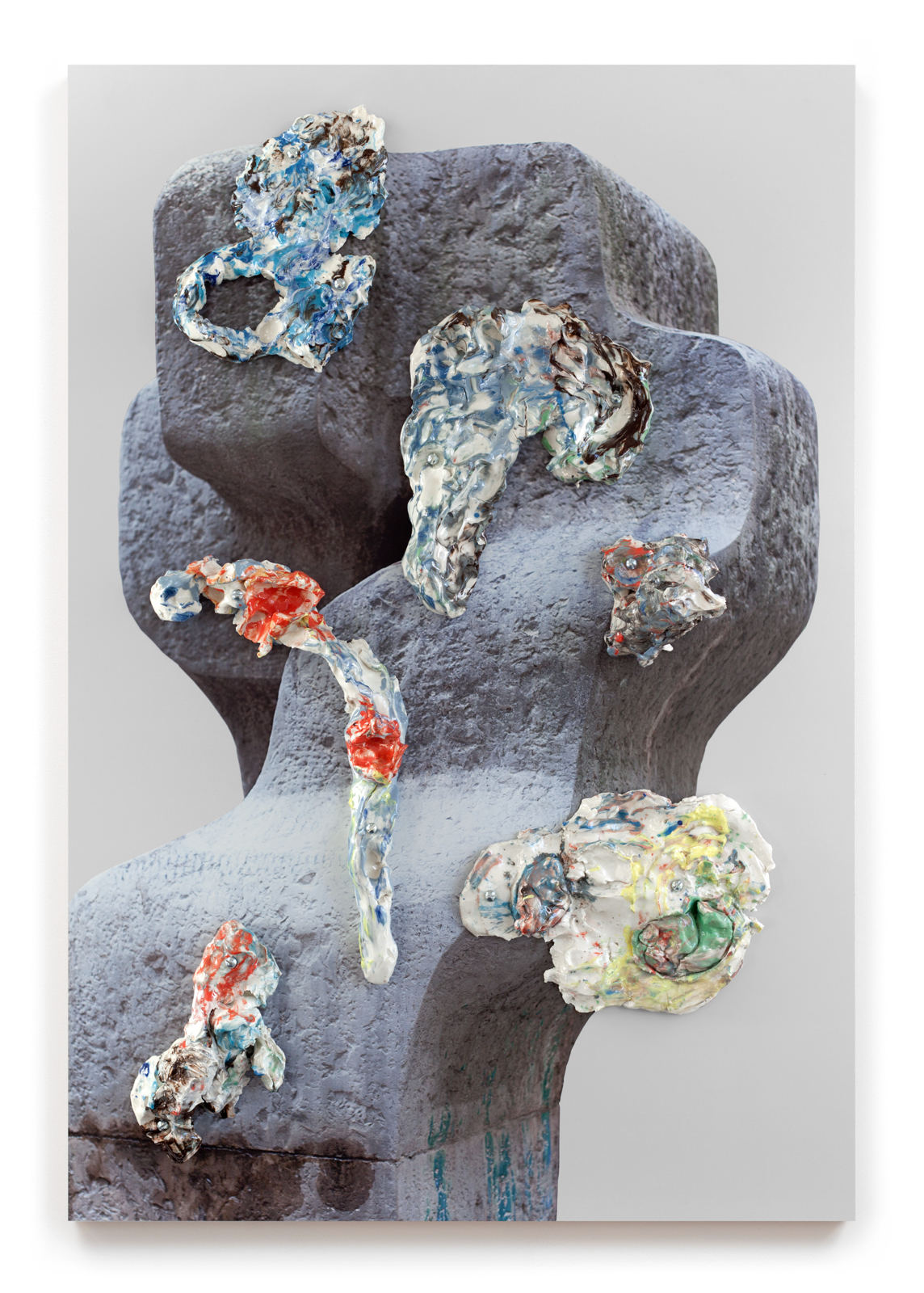 printed chipboard, painted and glazed porcelain, screws